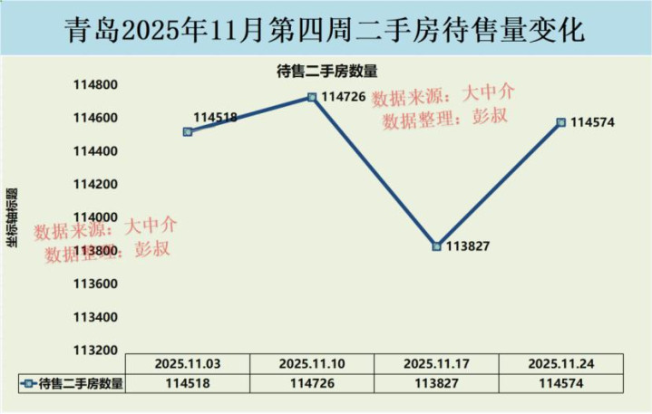青岛楼市现在待售二手房数量还是维持在了高位,从11月3日到11月24日,青岛楼市的待售二手房从114518套变成了114574套,整体还是比较多的。